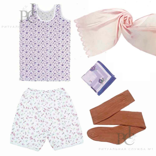 Состав комплекта: сорочка, панталоны, чулки, носовой платок, платок на голову